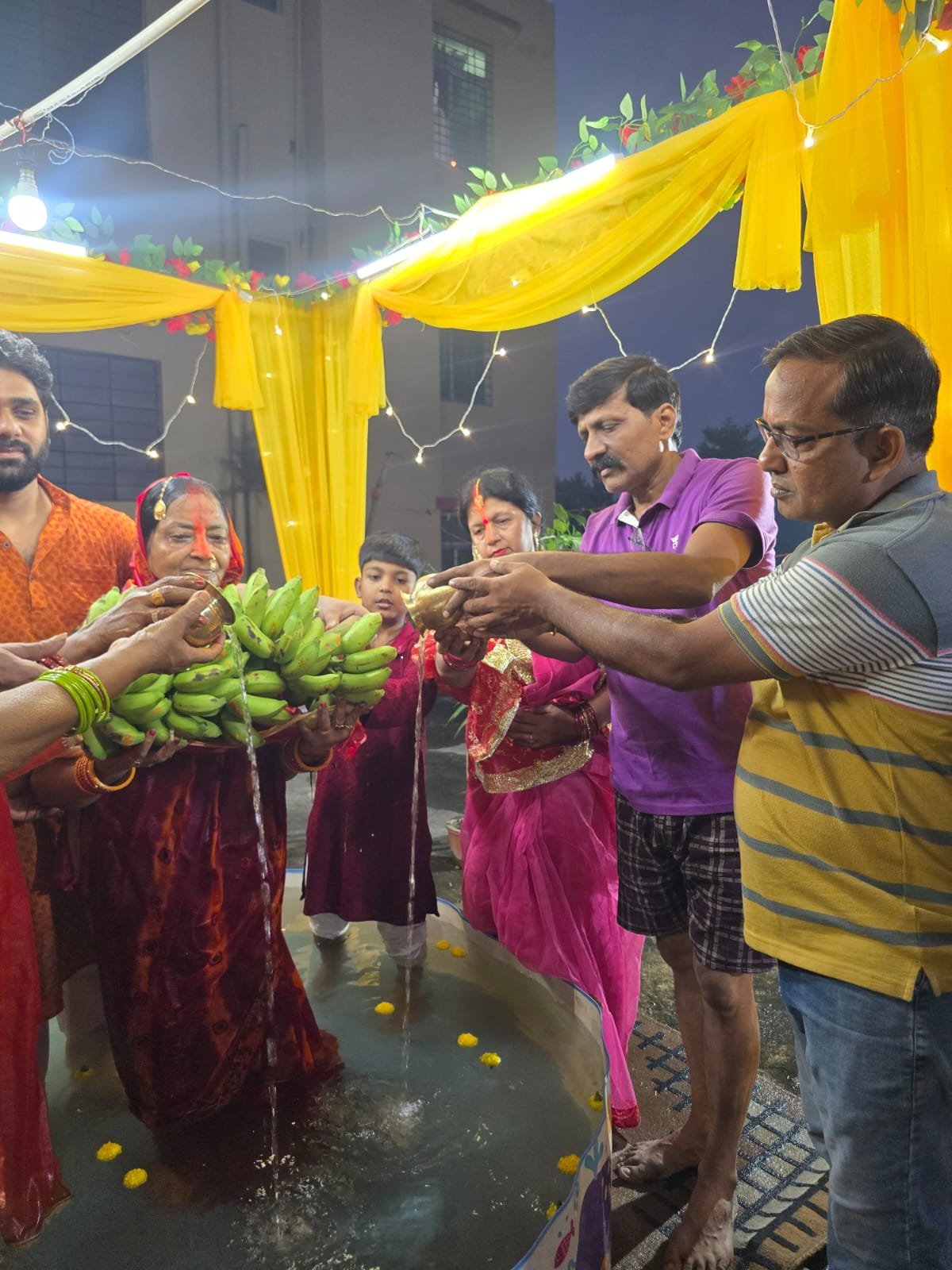 छत पर सजे छठ घाट को सुंदरता और पवित्रता का प्रतीक बनाया गया था। केले के पेड़, दीया, फल, फूल और ठेकुआ की सुगंध वातावरण में छाई हुई थी। डूबते सूर्य को अर्घ्य देने के समय पूरा वातावरण “जय छठी मइया” के जयघोष से गूंज उठा। संध्या अर्घ्य के पश्चात अगले दिन प्रातःकालीन अर्घ्य के दौरान भी उपस्थित सभी लोगों ने सूर्य देवता को नमन किया।